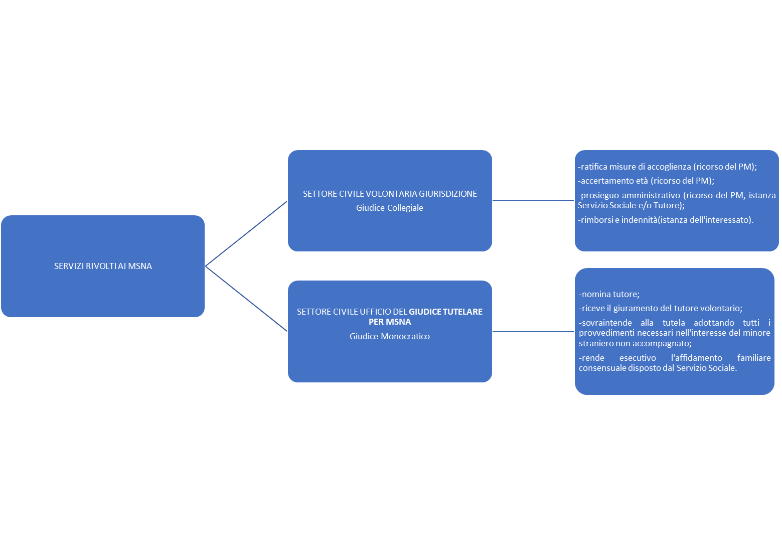 La Legge 47/2017, nota come legge Zampa ha attribuito al Tribunale per i Minorenni nuove competenze in materia di tutela dei Minori Stranieri Non Accompagnati (MSNA), cioè minori di anni diciotto, cittadini di Stati non appartenenti all'Unione europea o apolidi, che si trovano, per qualsiasi causa, sul territorio nazionale, privi di assistenza e rappresentanza legale da parte dei genitori o di altri adulti per loro legalmente responsabili.